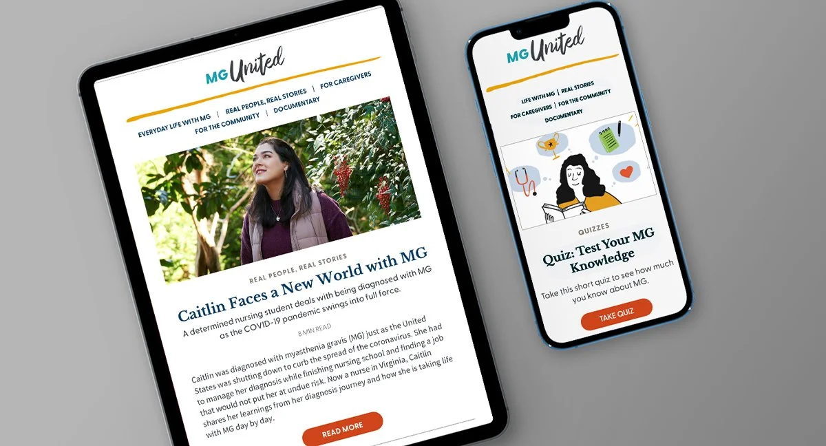 MG United—a high quality and robust monthly editorial website (supported by multi-channel marketing) provides this community with valuable information about their disease, engaging stories highligting members of the community and much more. The site saw over 35,000 opt-ins in the first 15 months, exceeding our goal by 220%.